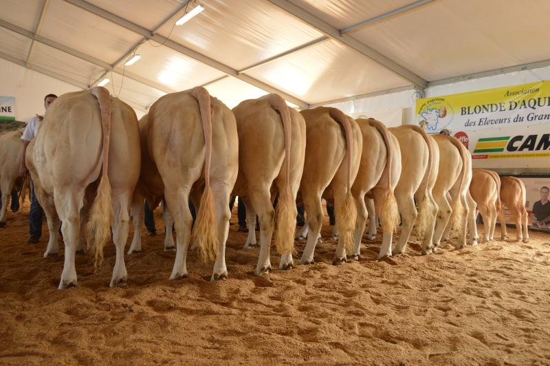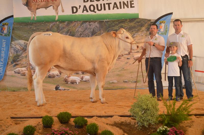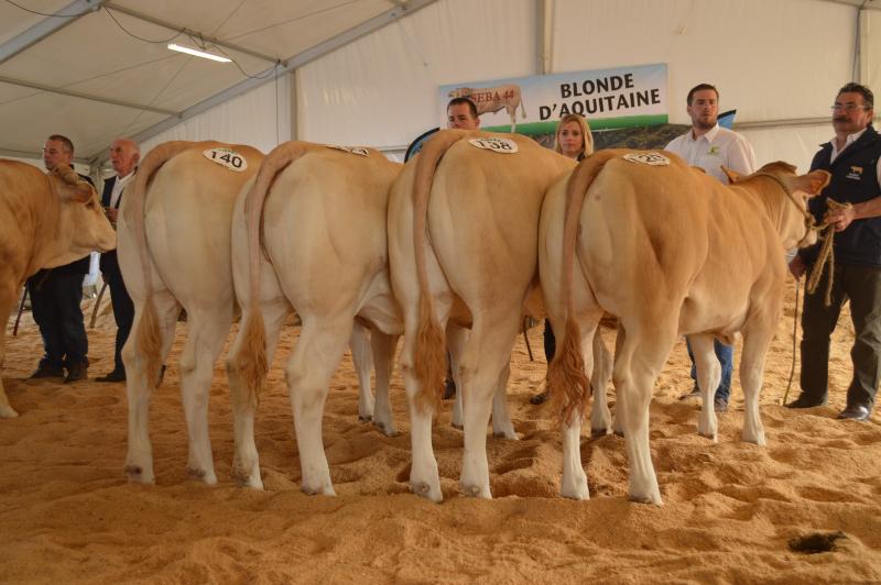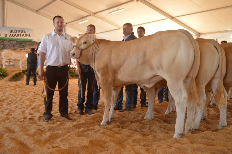 Cette année encore le concours inter-régional à réuni plus de 250 Blondes d'Aquitaine. Présents à cet évènement avec : 3 jeunes taureaux, 7 génisses, 3 vaches et 3 veaux, nous avons remporté 3 premiers prix, 1 deuxième prix, 2 troisièmes prix ainsi que le 3ème prix de descendance mâle par Ghetto et le 2ème prix d'ensemble. Vous trouverez le détail de ce palmarès dans le document téléchargeable ci-dessous. |